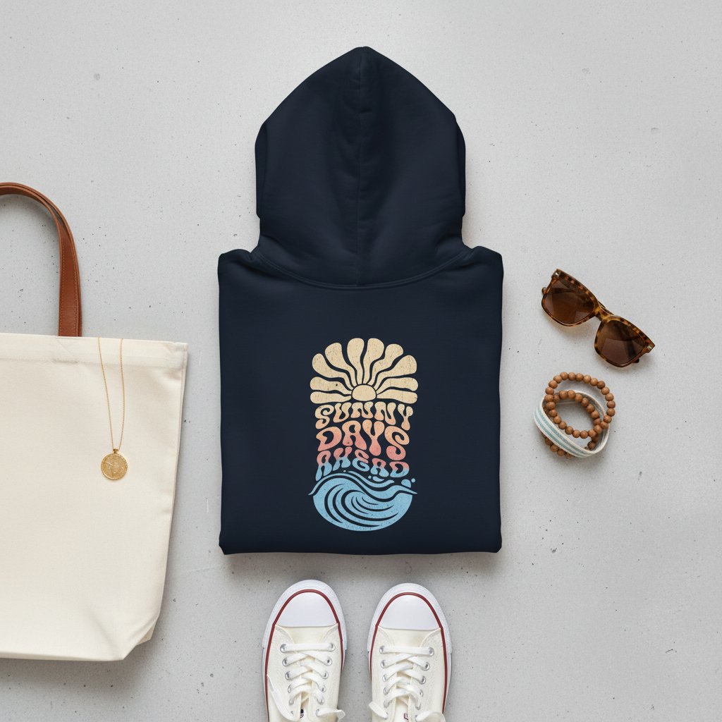 The Sunny Days Ahead "Daybreak" graphic includes small, subtle script on the back (almost hidden) within the design that reads "You be You" as a small reminder to encourage authenticity and find value in being yourself. Sunny Days Collective™ is a California-born beach lifestyle brand with a bright outlook — all in a super-soft, cozy hoodie. It stands on style first… with a little feel-good energy woven in. This hoodie features a graphic on the front pocket. See images for reference.