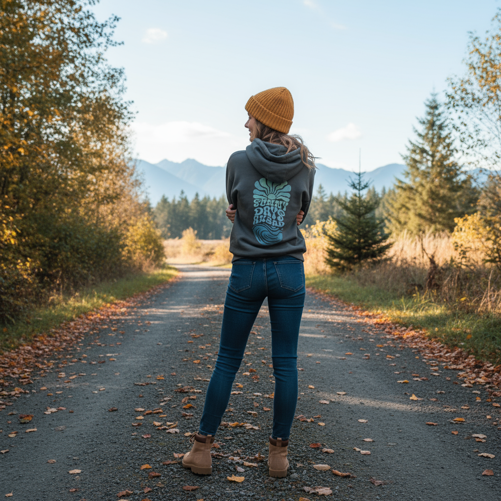 Sunny Days Ahead "LowTide" features blues inspired by the non-profit organization, The Teen Project*. A portion of proceeds from purchases of this hoodie will go to support The Teen Project. The "Low Tide" hoodie does feature a small graphic on the front. See images below. This hoodie features very small script on the back design that reads "It's darkest before the dawn." This hoodie is blank on the front.