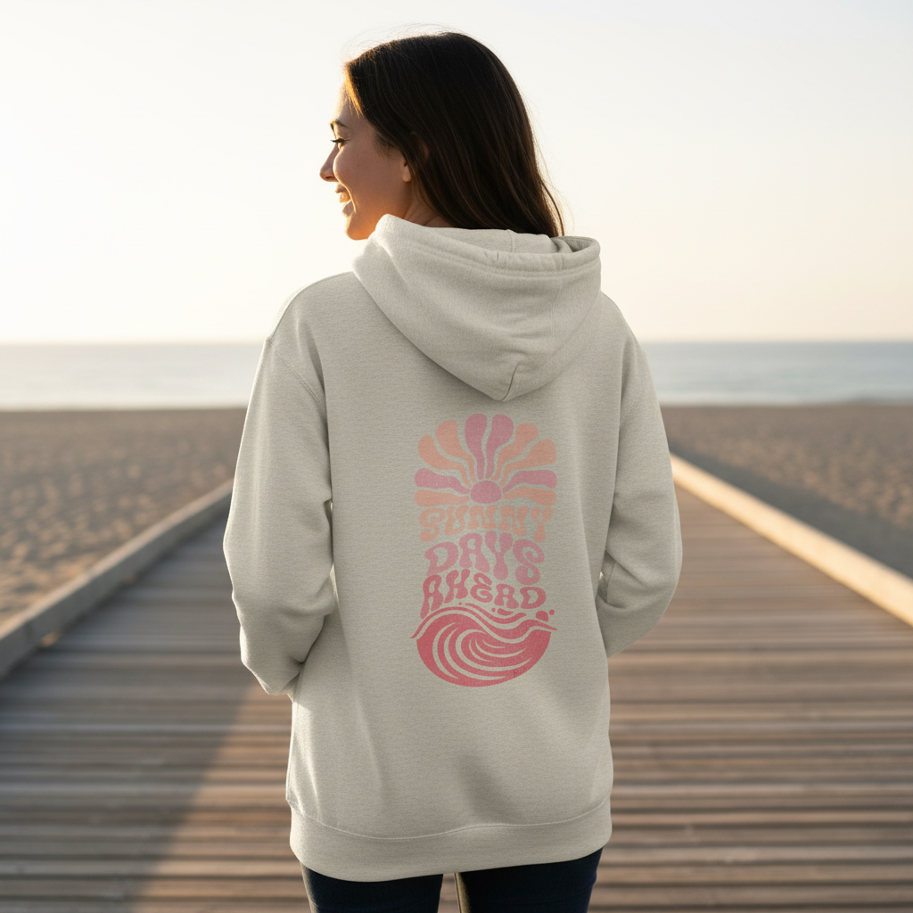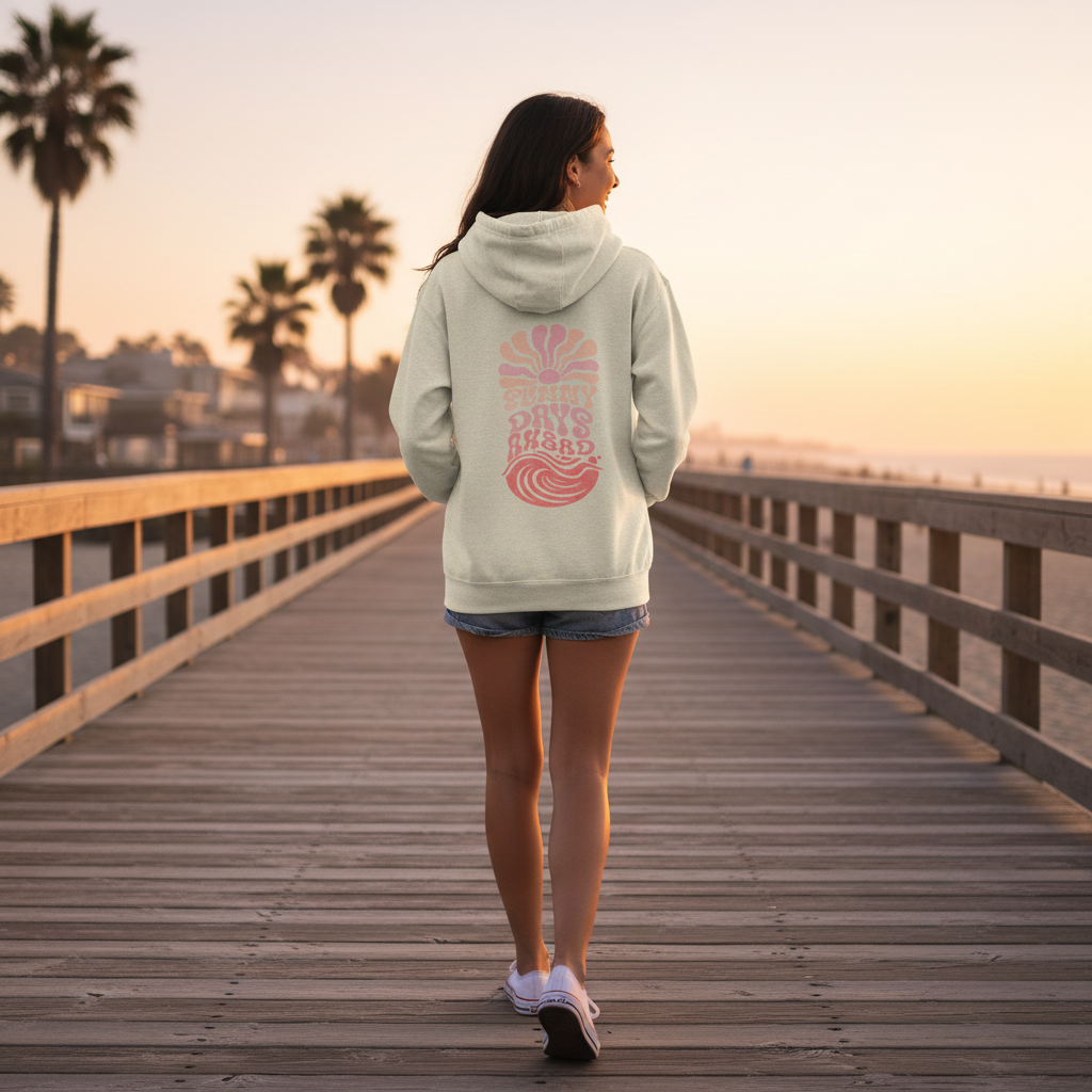 The Sunny Days Ahead "Sorbet" graphic includes small, subtle script on the back (almost hidden) within the design that reads "Lead With Love" as a small reminder that when you lead with love, you'll find your way. Sunny Days Collective™ is a California-born beach lifestyle brand with a bright outlook — all in a super-soft, cozy hoodie. It stands on style first… with a little feel-good energy woven in.